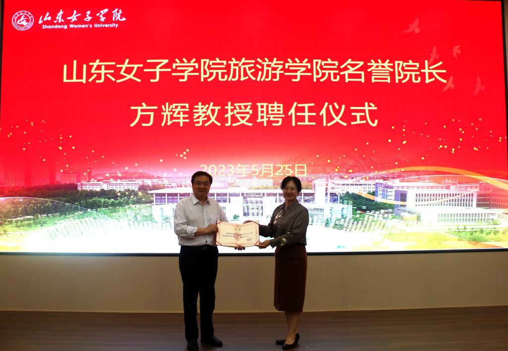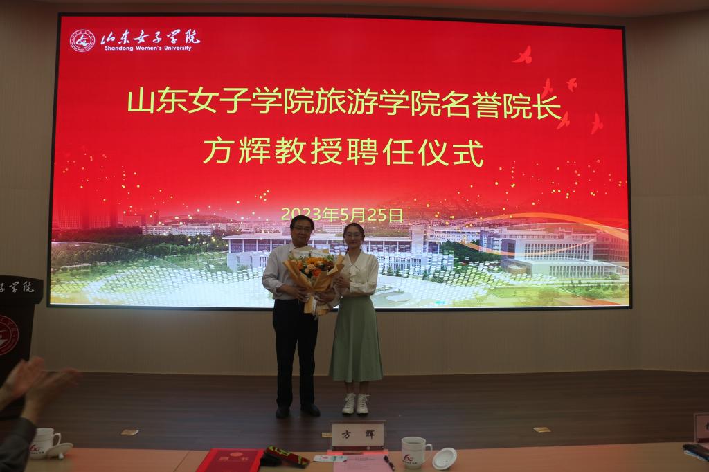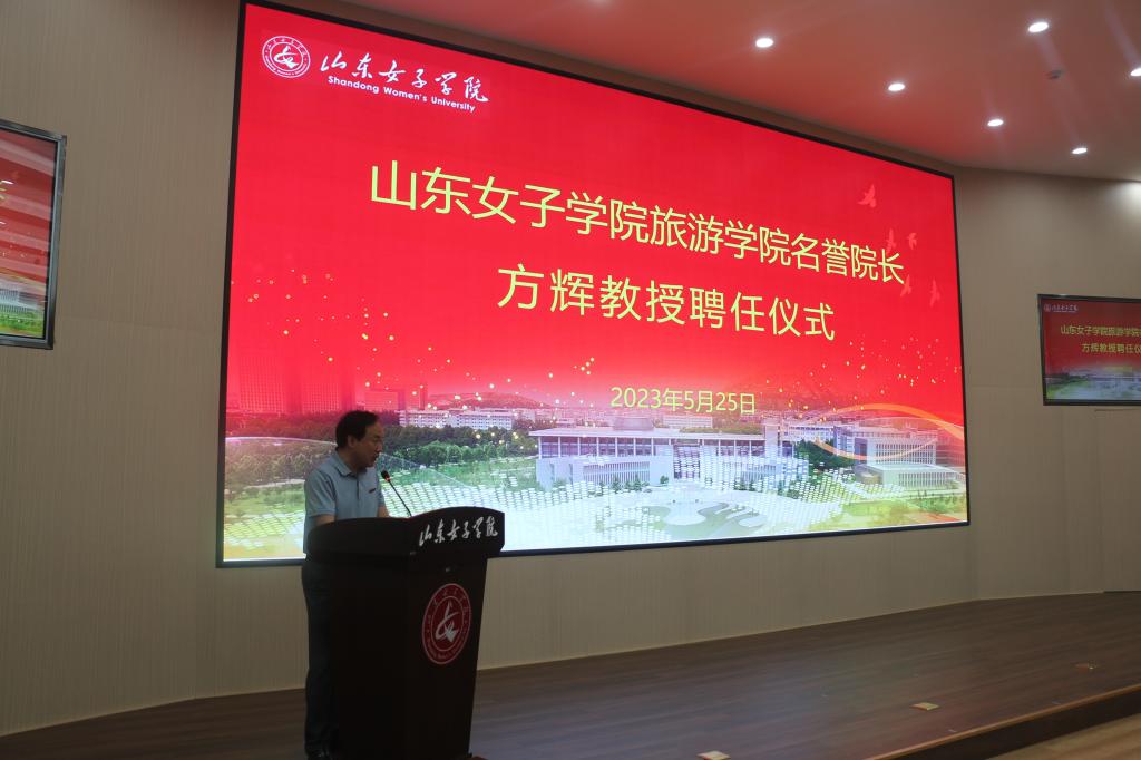 5月25日,山东女子学院旅游学院名誉院长方辉教授聘任仪式在我校求真楼报告厅隆重举行。学校党委副书记、校长李光红,党委委员、副校长刘恩允,党委委员、纪委书记,省监委驻山东女子学院监察专员杨恩红,学校各职能处室负责人,相关二级教学单位党政负责人和教师代表,旅游学院全体教师及学生代表出席聘任仪式。党委委员、副校长刘恩允主持聘任仪式。