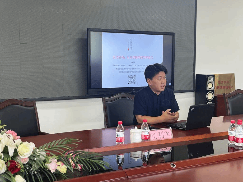 2023年9月7日,应旅游学院邀请,华东师范大学经济与管理学部教授、博士生导师贾利军为旅游学院师生举行了题为《以义生利:东方营销学的当世意义》的讲座,这也是旅游学院闻道学术论坛系列讲座之一。贾利军教授是东方营销学派代表人物、中国管理50人成员、教育部首届就业创业指导委员会委员及专家组成员、国务院就业工作领导小组办公室特聘专家。