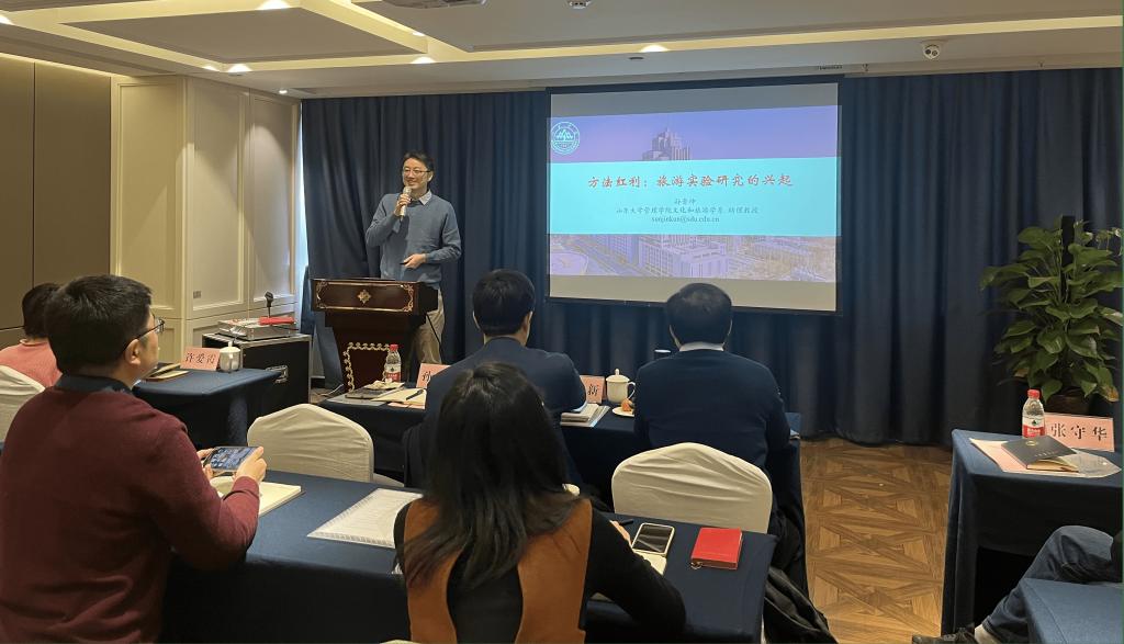 山东大学管理学院文化和旅游学系孙晋坤博士的讲座以“方法红利:旅游实验研究的兴起”为主题,结合旅游实验研究的发展现状和设计要点进行汇报分享。