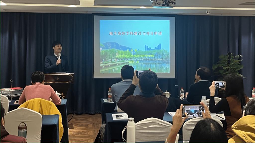 山东师范大学地理与环境学院院长王成新教授开展了以“地方高校学科建设与项目申请”为主题的学术讲座。讲座围绕着学科建设的时代背景、学科建设的项目支撑和基金申请的几点感悟三个方面展开,王成新教授结合个人经历向大家分享了申报国家级和省级基金项目的经验。