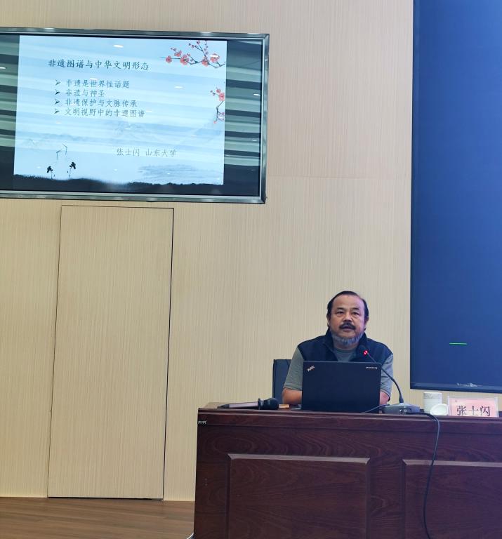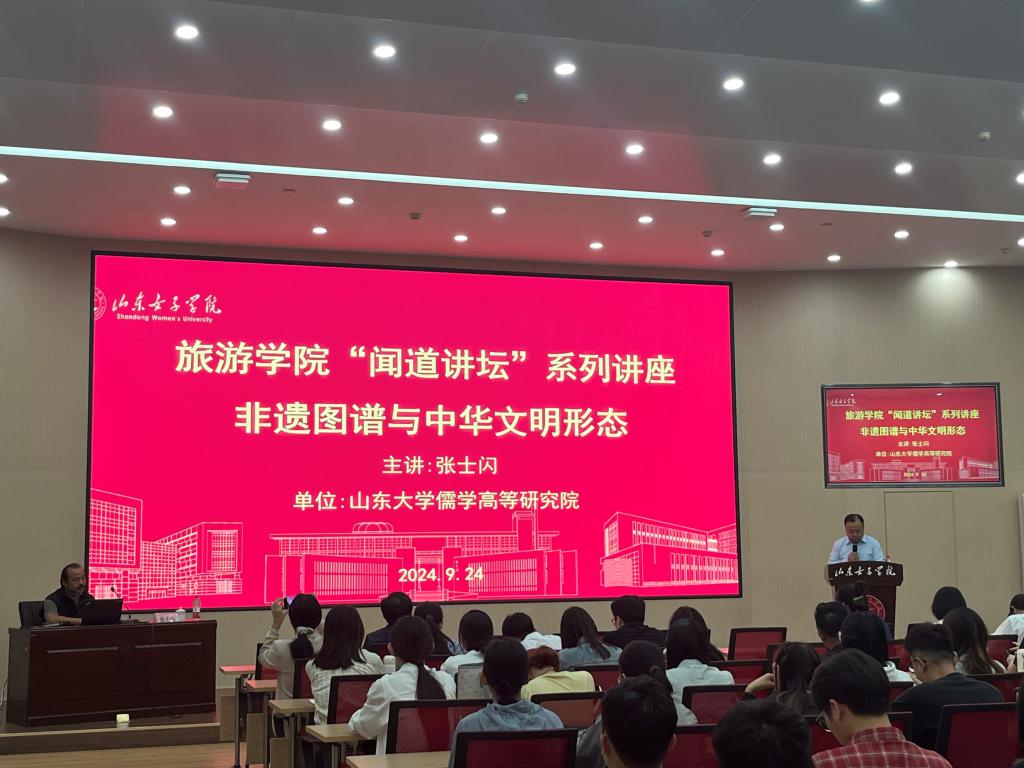 9月24日,旅游学院在求真楼1楼报告厅成功举办了以“非遗图谱与中华文明形态”为主题的学术讲座。此次讲座特别邀请到了山东大学特聘教授、《民俗研究》主编张士闪教授作为主讲嘉宾。出席本次讲座的有旅游学院2024级新生、新引进的博士教师以及全院教职工,讲座由旅游学院院长张明主持。