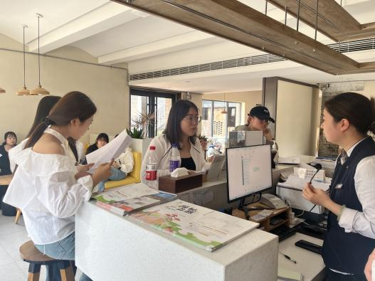 活动首日,师生前往淄博颜神古镇,聚焦特色民宿运营展开调研。通过分组实地考察、访谈经营者及模拟服务流程,分析民宿在旺季接待、淡季营销等环节存在的痛点,并提出创新解决方案。学生在古镇陶瓷文化主题民宿中感悟“文化+服务”的融合价值,思考如何通过服务设计传播地域文化,助力乡村振兴。