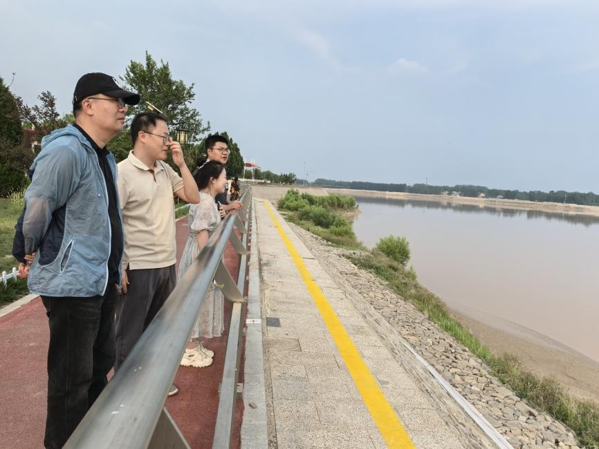 调研组实地走访考察了位于山东省齐河县南坦黄河咽喉地段,为纪念黄河首艘机淤固堤吸泥船“红心一号”而建设的文化地标——红心广场。团队成员细致考察广场建筑布局、文化传承、提档升级与社会影响,并探讨该湿地公园所承载的蓄水分洪、净化水质、调节气候、科普教育、旅游休闲等方面的功能,全面梳理了齐河县黄河文化保护传承弘扬及旅游高质量发展存在的问题、困难以及对策路径。