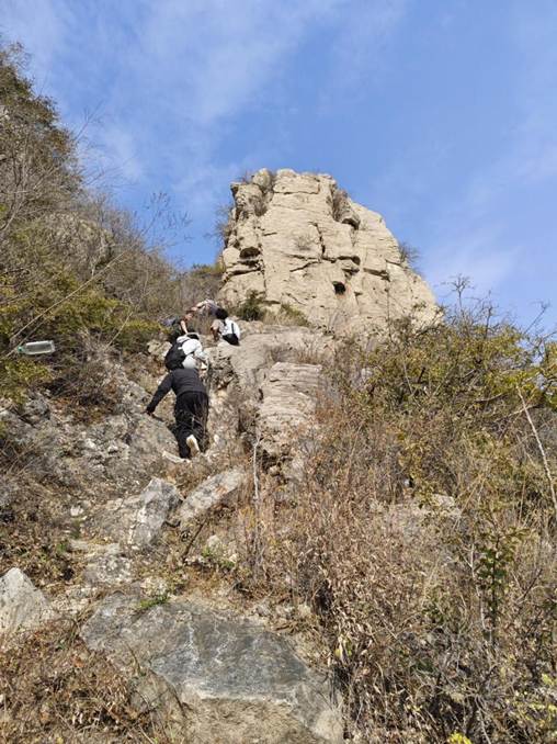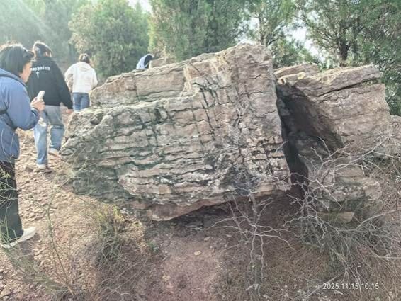 清晨,同学们怀着期待整装出发。抵达目的地后,考察活动有序展开。迎着初冬的朝阳,同学们沿着寒武纪岩层徐徐前行。本次考察聚焦于该区域典型的地质构造、地层剖面和古生物化石点,旨在让同学们亲身体验地质调查工作的基本流程与方法。