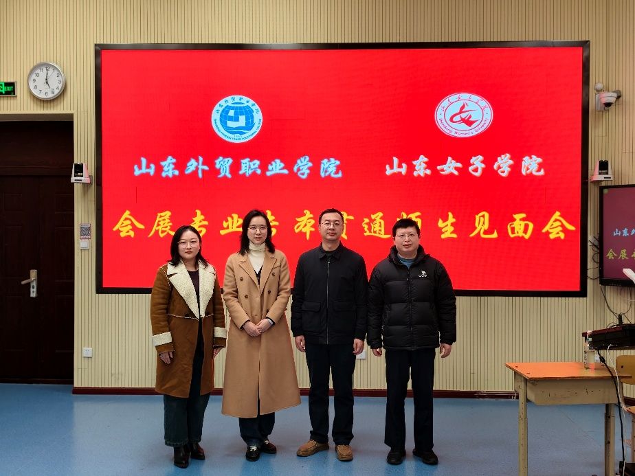 12月16日下午,旅游学院会展经济与管理教研室教师李鹏、宋志东赴山东外贸职业学院,与经济管理系会展专业“3+2”专本贯通2024级、2025级共80名学生开展了交流座谈。经济管理系副主任周菲菲、会展教研室主任华洁一同参与交流。