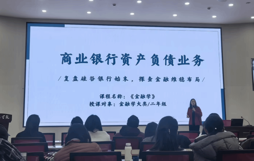 首先,何老师系统梳理了青教赛各阶段材料要求,并分享了个人参赛心得。然后,以《商业银行资产负债业务》课程为例,现场展示了富有张力的片段教学。以“复盘硅谷银行始末,探查金融维稳布局”为线索,贯穿精讲核心知识、引导学生分析与反思,实现了理论讲解与案例实操的有机衔接。何老师表示,青教赛不仅是教学技能的“加速器”,更是教师职业成长的“炼金石”。鼓励教师们以竞赛为契机,持续积累教学素材、凝练课程特色,在反思中不断精进教学艺术。