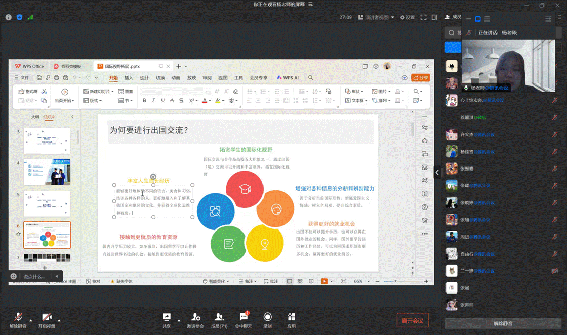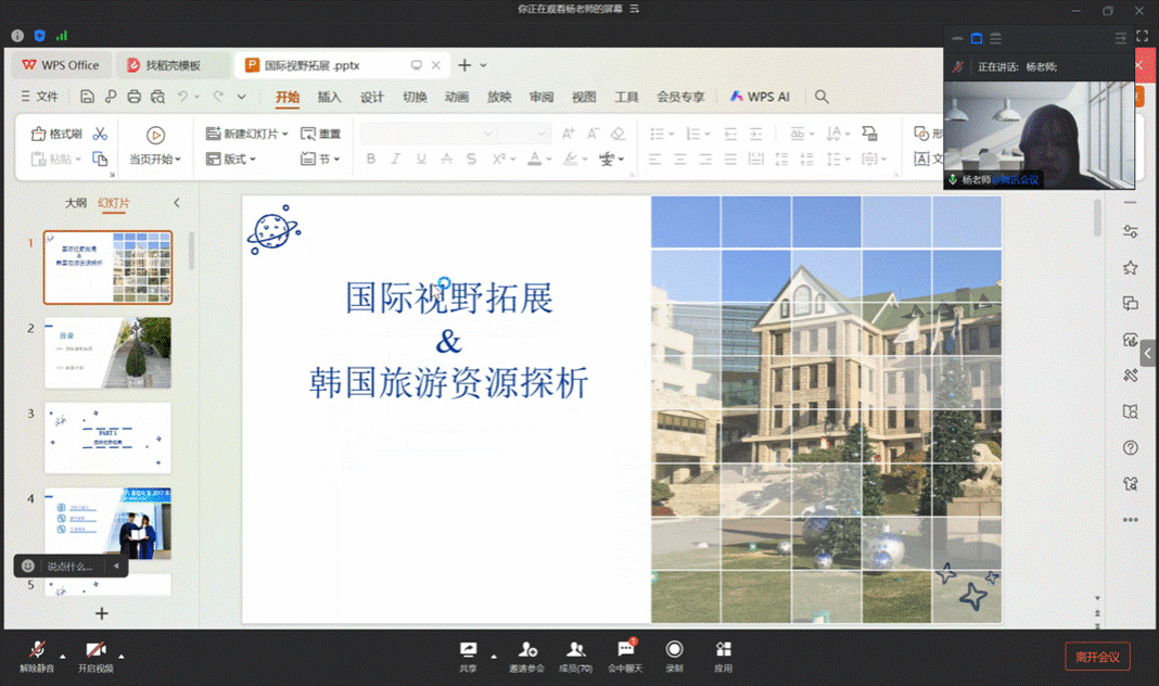 围绕韩国作为重要留学目的地与人文交流对象,杨雪重点介绍了韩国丰富多样的旅游文化资源,从自然景观、历史文化遗产到现代文旅产业与特色文化项目,全面展示了韩国社会文化的多维图景。本次讲座内容充实、视角新颖,既有理论深度,又紧密结合实际,受到在场师生的一致好评。与会同学纷纷表示,通过此次讲座,对出国留学与国际交流有了更加全面、理性的认识,也进一步激发了参与国际交流、拓展国际视野的积极性。