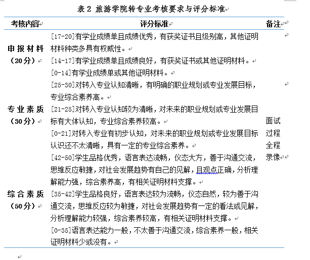 2)专业素质:学生对拟转入专业领域的认知、职业规划、专业综合素养等;3)综合素质:学生品格、表达能力、综合理解分析能力等。