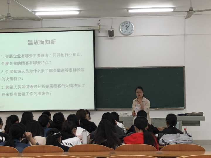 此次观摩的是杨艳老师的《会展市场营销》,授课地点在博文楼103教室。授课班级是会展经济与管理1701班,共33名学生,实际到课33人。