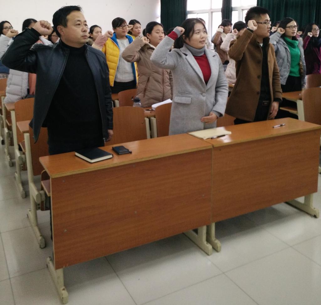 学院党总支书记张明对18位同志的入党、转正表示热烈祝贺,并提出希望和要求,希望她们在学校迎评创建中充分发挥党员的先锋模范作用,以自身行动为学院和学校发展做出贡献。
