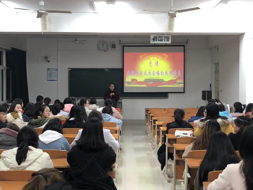11月27日,旅游学院党总支副书记孔晓晓以“坚定理想信念,争做新时代文明守纪模范大学生”为题,给2018级旅游管理本科和旅游管理春考本科2个班的学生上了一堂党课。