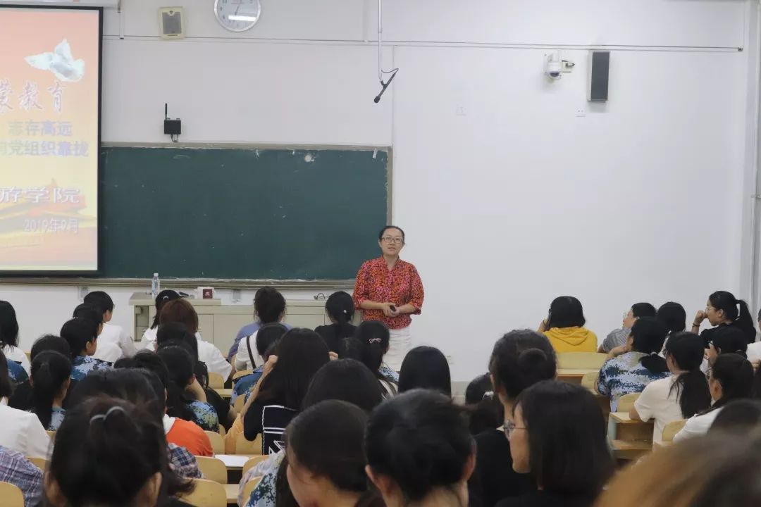9月5日晚,旅游学院党总支书记吕建国,党总支副书记孔晓晓,分别在2019级新生中开展以“心怀理想,志存高远,以实际行动向党组织靠拢”主题的新生入党启蒙教育。